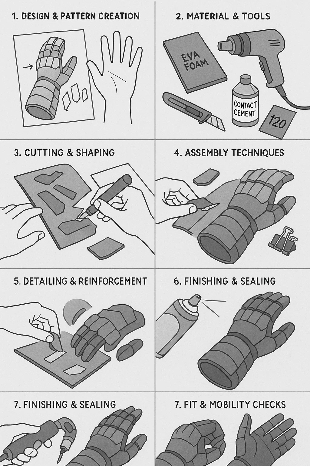 Vytvoření EVA pěnové rukavice nebo gauntlets je oblíbená metoda pro cosplay, LARP nebo kostýmní projekty. Zde je praktické rozdělení procesu: