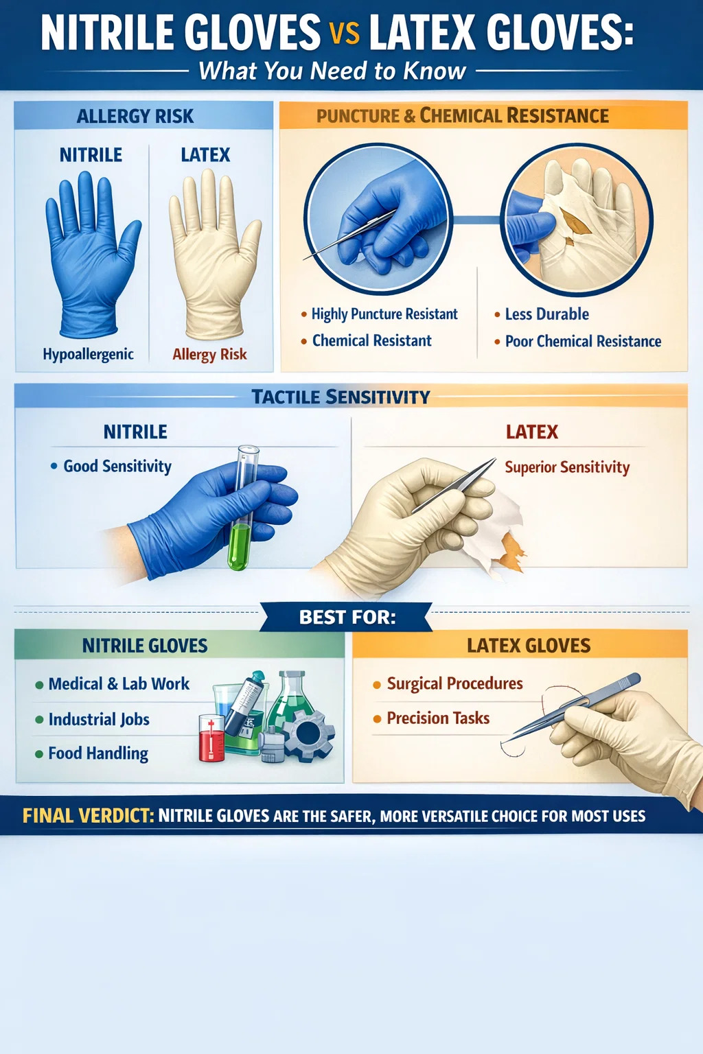 To znamená, že „bezpečnější“ závisí na vašem konkrétním kontextu. Latexové rukavice mají stále významné výhody v hmatové citlivosti a elasticitě, díky čemuž jsou preferovány v určitých chirurgických a jemných procedurálních podmínkách. Cílem tohoto článku je jasně rozebrat rozdíly, abyste mohli učinit informované rozhodnutí na základě vašeho skutečného případu použití – nikoli univerzální doporučení.